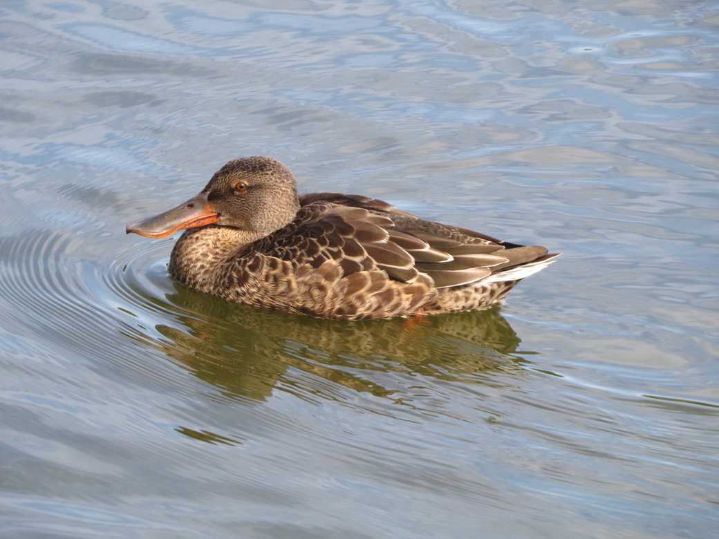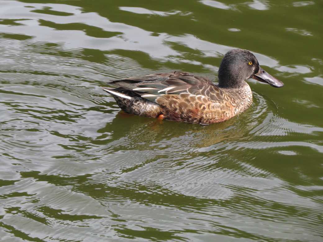 房総のむら隣接する坂田ヶ池で観察したハシビロガモとは趣の違った羽衣でした。