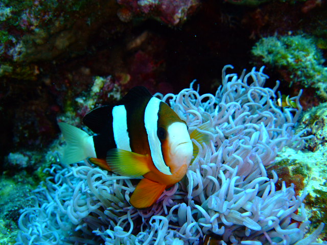 台風の影響で、一度消えかけたのですが、前日になり見事に復活してくれた今回のDiveツアー(笑)今回は、職場の同僚の彼氏の職場のダイビングサークルにちゃっかり便乗して、座間味のほうまで行ってきました☆しかし・・・連休って言うこともあって、海の中にはダイバーがたくさんいらっしゃいました(^^;今日はほとんどお魚は撮ってませんねぇ~。このニモこと、クマノミくらいでしょうか??1本目は七番崎へ。カメの出るポイントの一つ。自分が調子悪かったこともあり、あまり色々見れなかったのですが、や~~~と愛しのうみがめちゃんとご対面できました♪この風貌だと、たぶんアオウミガメかな??体験ダイビングを含め、実に30本目にして、うみがめちゃんとのご対面を果たしました(笑)(こんだけ沖縄で潜っていて、かめと会わないのも珍しいねぇ~、と言われましたが(^^;;;)今日はこの一匹だけで、じ~っとしている子だったけれど、次回は一緒に泳いでみたいな☆2本目は、サンド・トライアングルというポイント。名前の通り砂地です。今日の透明度は40m以上って言うことで、水面からの海の色も本当に透明で綺麗だった!これが私のデジカメの限界です(^^;;ここは地形のポイント行って言うことで、潜ってみるとこれまた遠くまで見渡せます☆そして綺麗な白浜がずっと続いてます(^^)こんな感じで写真を撮ったりこんな風に立ってみたり一時貸しきり状態の砂地で宙返りをしてみる人もいたり思い思いに楽しめました☆地形のポイントでは今日が一番透明度もよくて綺麗だった~~☆そして寄港してからは、ショップ主催のBBQ大会♪心もお腹も目一杯満たされた1日でした♪