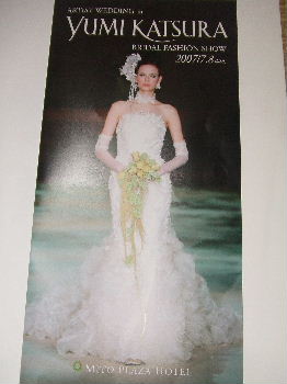 昨日の日記にあります、LIVEに泊りがけで行ってきて、朝戻ってきてすぐにこちらに行きましたこれも水戸プラザホテルのシンデレラクラブのほうから、希望者には招待状が送られてきましたこういう特典はうれしいですもちろん、今回の会場も水戸プラザホテルさんYUMI KATSURA BRAIDAL FASHION SHOW桂由美さんをはじめ、フラワーデザイナーのKAORUKOさんやメイクアップアーティストのAKIRAさん、特別モデルとして、JJでお馴染みの有村実樹さんがいらしてました。可愛かったです用意された衣装はパンフレットによると73点の模様。実に桂由美さんらしいデザインと色使いだなぁ~って、一緒に行った昔ファッション業界の仕事をしていた人と話しながら見てきました。それと、実はドレスよりも~~~!個人的には、男性モデルにカッコいい人がいたのが嬉しいです目の保養になりましたでも、一つ注文するのなら~~~・・・。ステージをもうちょっと高く作って欲しかったです(^^;;;私、ベストポジション、ステージの前中央!!しかも3列目だったのですが、一番よく見えていたのは、私の前にお座りになった桂由美さんの後頭部でした・・・う~ん・・・残念!