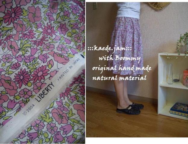 久々に自分の洋服を作りました^^もちろん私の大好きなリバティCapelで何を作ろうか迷ったんだけど...やっぱりシンプルにティアードスカートにしました。これなら普段気軽に着れるし、かしこまってないし(笑)着てる時、風になびく感じがなんとも言えず年甲斐もなくウキウキですペチコートもスカラップ生地で作ったので気分は乙女~(笑)ブログランキング参加中 いつもクリックありがとうございます^^ ←今日もポチっとお願いね ←クリックすると私のホームページに飛べま~す☆*kaede.jam* BBS掲示板☆*ヤフオク出品中です*覗いてみてね☆
