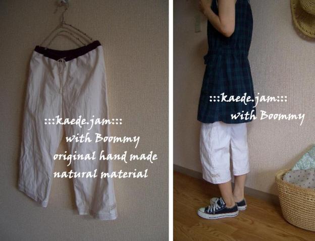 *kaede.jam* with Boommyをご覧頂きありがとうございます。今日も甲府は朝からピーカンです伸びの良いストレッチデニムでホワイトカプリを作りました。リネンワンピやチュニックに合わせていかがですか^^半端丈が可愛いですよ私は冷房が効いてくると下に12部丈スパッツをクシュクシュとさせてはきます(笑)ミシンを踏んでると足元だけが寒くて・・・スパッツを合わせるとまた感じが変わって、いろんなレイヤードが浮かんできて一人でワクワクするのでしたwブログランキング参加中 いつもクリックありがとうございます^^ ←今日もポチっとお願いね ←クリックすると私のホームページに飛べま~す☆*kaede.jam* BBS掲示板☆*ヤフオク出品中です*覗いてみてね☆
