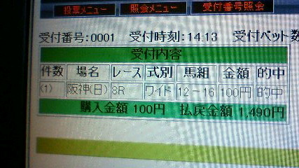 読みは良かったのに。。。残念。先週、今週と大荒れG1での特徴をもうひとつ。水曜日にグリーンchで放映されている「今日の調教」で、美浦,栗東それぞれで一番初めに、調教VTRが流れた馬が活躍している。アサヒライジングが分かっていて、なんでコイウタ買えないかね?同枠だからか?外目の枠のゾロ目は買いやすいけど、内(1,2)枠のゾロ目は買いにくいよね。