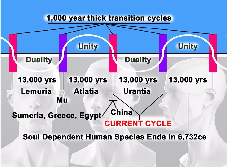 13000年ごとに 分離と統合 、社会形態の変化を表わしております。レムリア→アトランティア→ウランティア →これからのサイクルと 変化しております。