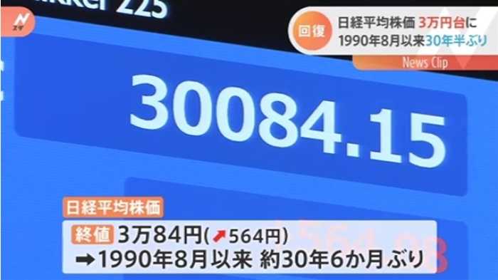 バブル期以来30年ぶりに日経平均株価が3万円の大台突破 大規模金融緩和や財政出動が追い風に
