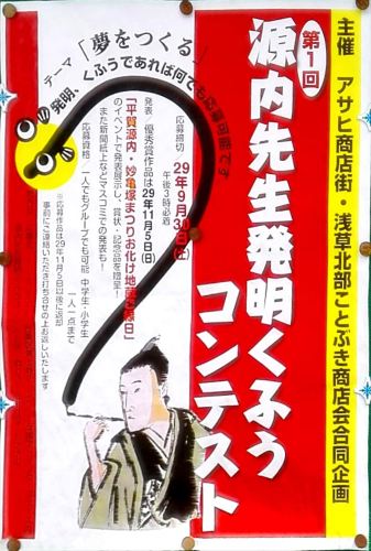 今度、区内で下記のようなコンテストが開かれます。源内先生とは平賀源内のことです。区内に平賀源内のお墓があるのです。小中学生の夏休みの課題にもぴったりですね。^^今回調べて初めて知りましたが、平賀源内のお墓は、香川県さぬき市にもあるようですね。