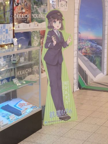 鉄道むすめってご存じですか。四日市あすなろう鉄道四日市駅の構内に「追分あすな」のパネルがありました。名前は追分駅と会社名から取ったみたいですね。着ている服は、四日市あすなろう鉄道のユニフォームがモデルなんですかね。グッズもいろいろあるみたいです。^^で、鉄道むすめのホームページにキャラクター総選挙というのがあって、12位に同じく三重県桑名市にある三岐鉄道の「楚原れんげ」が入ってました。^^高校時代の有人の最寄り駅が楚原駅で、蓮花寺という駅もあるんですよね。両方から名前を取ったみたいです。