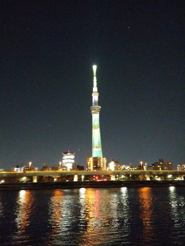 今日はずいぶんと変わったライティングでした。調べてみましたら、2月4日から公開される映画「大怪獣のあとしまつ」を記念したものだそうです。このライティングも、その映画に登場する怪獣にちなんだカラーで点灯しているそうです。こんな色の怪獣なんでしょうか。^^