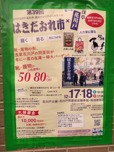 先日、玉姫稲荷神社の靴市が終わったばかりですが、今度は花川戸公園で靴市があります。さすが地場産業ですね。靴の安売りは助かりますね。^^