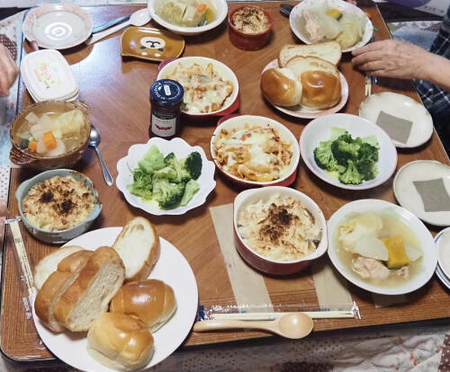 昨日はクリスマスパーティーでした。グラタンやらスープやら、自分には名前が良く分からない料理がいっぱい出てきました。^^写真はみんなで食べた高級な(?)ロールケーキ。美味しかったです。^^