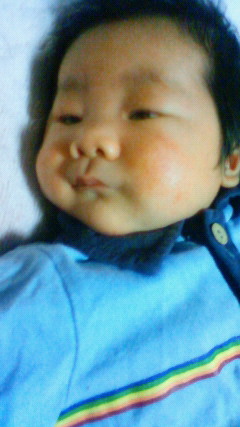 赤ちゃんニキビ…ほっぺの所赤くなってるの。かわいそうなくらい出来てるよ