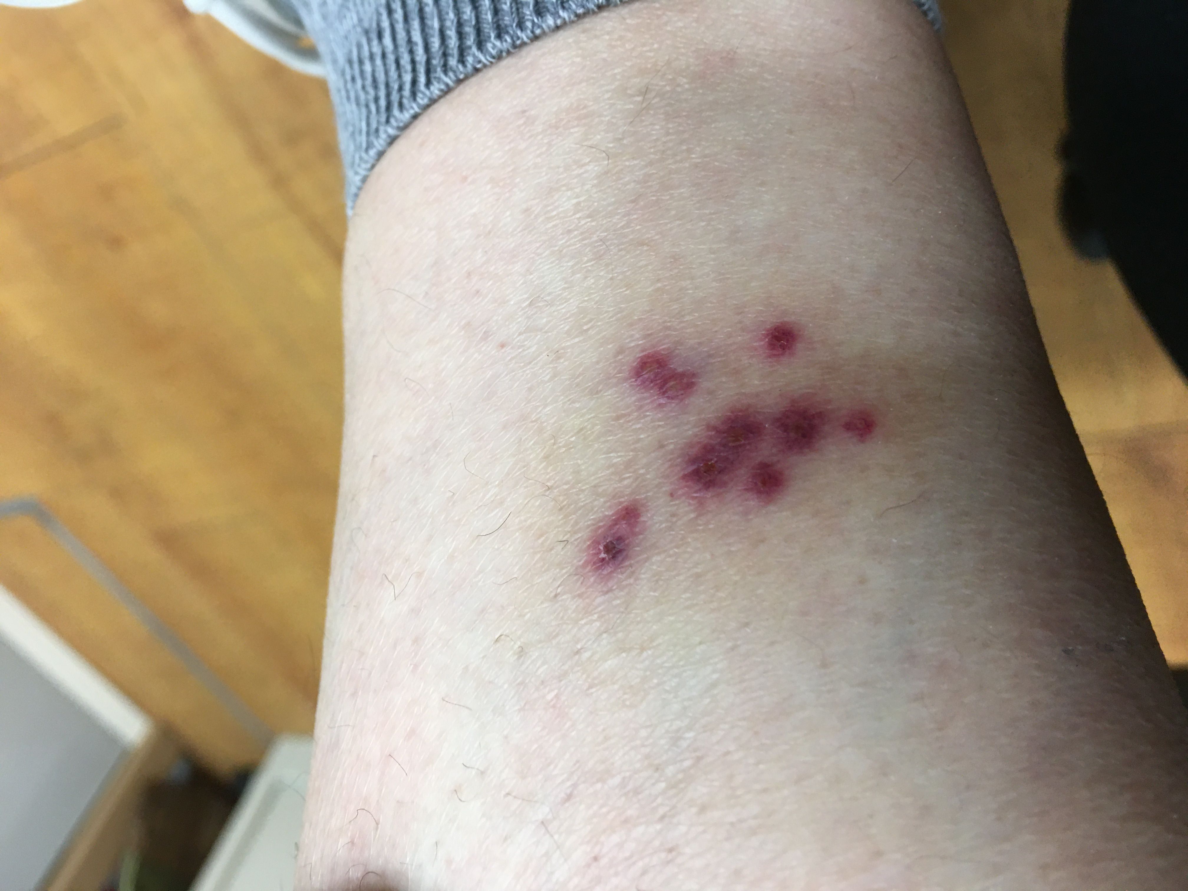 虫刺され?ダニ?と思う程度。かゆいので、かゆみ止めの薬を塗っていました。