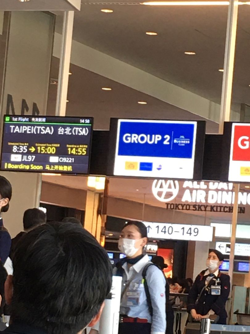 独身時代から数えると、飛行機に乗った回数50回以上?、その中で初めて飛行機で遅延が起こりました。JALで機材故障です。いや〜、ほんとびっくりでした。離陸体制に入ったまま、ストップ。1時間くらい??たまにこういうことはありました。ですが、「エンジン付近で異音がするため、点検します。点検に1時間、燃料補給に30分で、1時間半後に出発します」とのこと。そしてやっと1時間半たち(この間、ずっと座ったまま。トイレは行けました)再度離陸体制。で、またなぜか離陸できず。そして再度点検することに。このときで、実際の出発時間より4時間くらい過ぎてました。8時35分出発だったのに、もう12時過ぎ。。機内食が始まりました。そして13時過ぎてアナウンスが。まだ2時間ほどかかるとのことです。。。えーーーーーーーー、、せっかく早い便にして現地で遊ぼうと思ったのに!!さすがに乗客が5時間座りっぱなしはまずいと思ったのか、13時過ぎてやっとJALのラウンジ無料ご招待です。でもするいのが、機内食を食べさせて腹いっぱいにさせてからのラウンジです。幸い、私は機内食嫌いなのでほんの少ししか食べませんでした。だからラウンジでは、たらふく食べましたよ。周りの人は機内食食べてるはずなのに、ラウンジでもすごい勢いで食べてました。結局、8時35分発が写真の通り15時発。でも実際は機内に乗り込んだのが15時15分くらい。出発は15時45分くらいだったと思います。合計7時間も遅延です。JALからは一切保証も何もなかったです。幸い、1日目はぶらぶらする予定だったので何も予約を入れてなかったから良かったですが、近くに座っていた人は、台北到着後、台中に移動して観光する予定がすべてキャンセルになってしまったようでした。私も1日目は奮発して、温泉付きホテルにしたのに、夜遅くについて、近所の屋台で夕食買って終了。ほとんどホテルに居れませんでした。ほとんど寝ただけ??ほんとひどいです。私が乗る予定の便のあとに、何便通常通りに台北に飛び立ったか。。。私が予約した便もがら空きでした。このご時世なので(コロナ騒ぎ)。だから他の便も空いていたと思うのです。そちらの便に乗れるよう手配してほしかった。。。こんな騒ぎがあったので、もうJALには乗りません。あまりに融通が利かないです。でも、誰も騒ぐ人も文句言う人もいなかったですね。そういうところ日本人ってすごいですよね。一番イヤだったのは、機内アナウンス(女性です)の声。申し訳ないというより、私だってうんざりなんです!!という声なんです、ほんとに。声に、気持ちが出ちゃっているみたいな。結局、離陸したときは搭乗員は全員入れ替わっていて、こちらのアナウンスは気持ちよかったです。