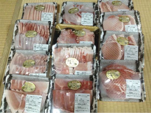 こちら届きました。見づらいですね。寄付日 1月15日寄附金額 1万円到着日 2月24日これです。クイーンハーブ豚 色彩(いろいろ)3.6kgセットクイーンハーブ豚・バラ焼肉用 300g×2・ロース焼肉用 300g×2・バラしゃぶ 300g・ロースしゃぶ 300g・ウデモモ焼肉用 300g・ロースとんかつ用 300g×3・ウデモモしゃぶ 300g×2しゃぶしゃぶが多めが良かったので、3.5kgじゃなく、3.6kgにしました。焼肉用の肉は用途が限られてしまうので・・。