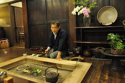 ご主人(吉田さん)自ら囲炉裏端で焼いてくださる野菜やヒレ肉も美味でした。