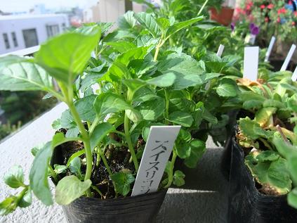 写真は、ベランダで待機する「スイスリコラミント」です。