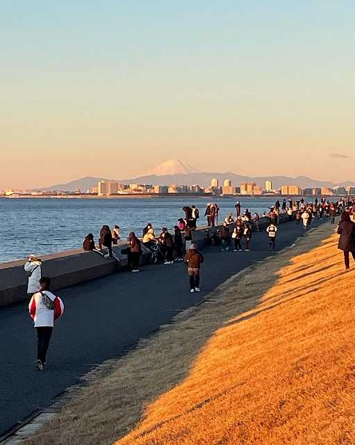 左手に幕張のビル群、マリンスタディアムを見ながら富士山が見えるところまで歩く。