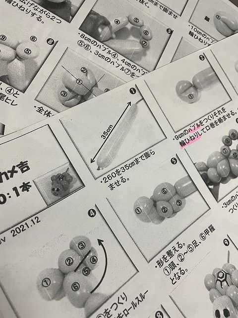 5種類ほどの作り方が記された資料の他に風船、空気入れ、スケール、マジックなどが配られる。