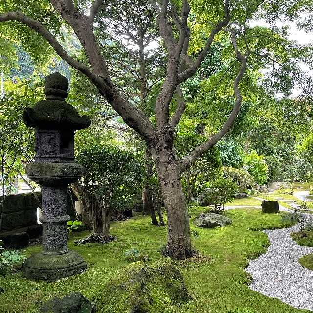 続いて 報国寺 へ、苔むす参道を入ると見事な庭園、槇が素晴らしい。半夏生も色合いを添えた眺めをしばし楽しむ。