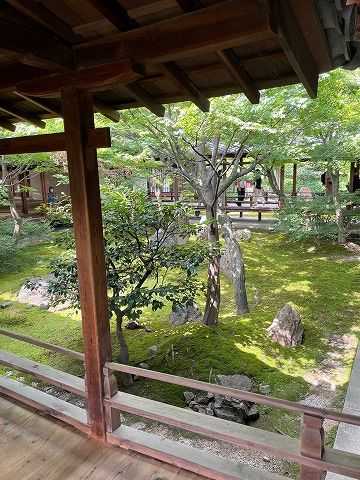 京都最古の禅寺で、栄西が建立。繁華街のそばに位置するが静か。ここは広く四方に広がる庭園が素晴らしい。俵屋宗達の風神雷神図でも知られている。