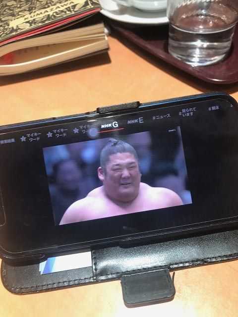 音声は出さずに取組みを視聴、勝てそうな感じだ。 勝負あり! よくやった!!