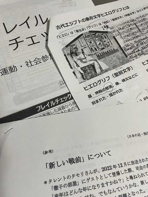 今日の二講座は強い関心はないが、こういう機会を活かして、興味を広げたい。そんな感じでまず、午前中の講座ヒエログリフのテーマは「古代エジプトの歴史と象形文字ヒエログリフの世界」エジプトと言えばピラミッドとツタンカーメン、クレオパトラぐらいの名前ぐらいしか知らない。地図で、下エジプトと上エジプト、主な都市とナイル川の説明で始まり、古代エジプト史の略年表で概要の解説。その後、墓や神殿の壁画などに残されたヒエログリフ(聖刻文字)の入門編。読めるようになったのは1800年代にフランス人シャンポリオンがそれぞれに残された碑文から共通点を見つけながら解読したらしい。読み解くことに恐れ入った。人や動物や鳥などの頭がどちらを向いているか、その向いている方から読み始めるとのこと。 へええ〜~~!しか出てこない😂王朝の歴史のプロパガンダであり、庶民史は見えてこないと言われ、確かに👍こういう壁画や文字を残すという人間の営みはとても興味深く、時代は違えど人は何かを残したい、伝えたいという願望を持っているのではないか、と、、、この歳になってあらためて感じる。たった1時間半だったが、古代に思いがワープして、そこに生きた人たちの情景を少し頭に思い描くことができた。午後はフレイルについて、柏市がこの取組みは先陣を切っているとのこと。知らなんだ😂フレイルチェックでは握力計が回って来て各自確認。久しぶりの体験、握力はやや弱いかな😂 でもまずまず、、フレイルのドミノ倒しにならないよう、栄養・運動・社会参加の三点に注意だ。終了後は19番ホールでミーティング。雑談は予定不調和でどこに飛ぶかわからないのが面白い。それぞれの人に歴史ありだ。 そういった点からも、ホームルームの提案はとても大事な要素を含んでいると考えている。現代の世相と政治に憂いて、いつもレジュメを用意してくれる方もいて、資料を大事に持ち帰った。 柏シルバー大学院学園記 更新 人生後半を楽しむ旅 柏シルバー大学院のブログ記事 生き方ランキング(現在1位) クリック↓でいろいろな写真が見られます 日々の出来事ランキング暮らしを楽しむ Facebook Twitter instagram youtube --------------------------------------------------------------------習志野の風景 写真集--------------------------------------------------------------------ワンストップ習志野--------------------------------------------------------------------習志野ぶらり--------------------------------------------------------------------習志野ぶっくさろん--------------------------------------------------------------------習志野わくわくMAP--------------------------------------------------------------------「習志野防災かるた」が完成--------------------------------------------------------------------わくわく習志野(ツイッター)--------------------------------------------------------------------足で拾ったビジュアル習志野情報--------------------------------------------------------------------習志野の民話が形(本)になりました--------------------------------------------------------------------アクティブシニアネットワーク・習志野--------------------------------------------------------------------アクティブシニア市民講座(習志野)--------------------------------------------------------------------和太鼓 そでっ鼓連--------------------------------------------------------------------夢こむさ習志野--------------------------------------------------------------------