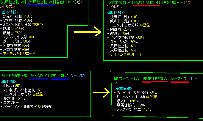 <タッタッタッタッタ Σ(´・ω・)ブワッ!リアルで思わず『うおっ!』って言ってしまったww威圧感はんぱねぇっす。 ども、カイザーです。さぁ!やっとこの日がやってきました!大型うpデートですね。 霊術師、ショートカットキーへの装備登録、インゴット、インフェニティ、ギルドメンバー表示変更、その他課金アイテムなどなど 色々とうpデートされてました。 まぁ前置きでぐだぐだ話すのもなんなんで、本編いきますぜい! 【霊術師】 別IDで姿だけ見てきました、やっぱり変身後は未実装のようですね。 私の予想だと、1週間くらいしたらGvにちらほら霊術師が出てくるのではないかと思ってますww スキルに関しては、私はテスト鯖に参加しなかったので、全く分かりません。僕剣士さんが、テスト鯖などで色々とスキルについて調査、検証を行っておられましたので、リンク張っときますです。→→僕剣士さんのブログ(霊術師について) 僕剣士さんのブログの内容を見る限りでは、武道は本当に分身維持が重要になってくる感じですね。しかし、今は精霊PETも多いですので・・・分身張り続けるというのは、精霊ペットの攻撃をずっと受けるのと同じなわけです。『相手の状況を見て』というのが出来れば苦労はないですがwやっぱり分身張り続けて、精霊ペットの攻撃をすべて受けようとも死なないくらいのHP、抵抗を揃えるのがベストですかねぇ・・・ 【ショートカットキーへの装備登録】これはなかなかに良い機能ですね!恐らくこれでニケ靴天使が増えそうな気がします。こんな感じで、付け替える2つの装備をセットすることで、Qを押すとQの装備を、Aを押すとAの装備を自動で装備してくれます。これで装備付け替え中に死ぬというのは無くなるでしょうし、様々な場面で対応が出来そうですねw~例~あ!精霊PETのダメが来てる! 以前↓ ↓今後装備画面開く 1~2回キーを押すだけで装備完了 ↓ 装備するこの差はなかなか良いものだと思いますw活用していきたいですのぉw 【インフェニティ】Lv5くらいまでは簡単に上がる・・・そう思ってた時期が僕にもありました。 1.インフェニティをそこらへんの石を4個買って、 石4つと交換でインフェニティLv1GET(費用1億弱)2.インフェニティのレベルを上げるため、石1個(約2500万)、出土品、 確立うp品(約1000万)+強化費用1000万で強化チャレンジ(計約4500万)3.失敗/(^o^)\or成功(`・ω・)」 まぁこれがまた・・・レベルダウンもあるわけで・・・1→2→3→2→1とか・・・ね・・・正直無理くせぇ^q^ ということで、買ったインフェダガーを即効売りはらい、ジェル購入しました。310Mですね。まぁ、今後インフェニティーガード?とかいう確立うp品の課金アイテムが出るそうなんで、それによってどこまで成功確率が上がるかによりますが、しばらくはジェルでいいですwwある程度火力が出せればそれ以上は求めませんよ・・・うm。 今度ポタも買いに行くので、ついでに30装備バッチでも買って、装備したいと思います。1か月あれば27Lvくらい上がるはずw 【春指キャンペーン結果】ワームNが当たったので、エンチャ挑戦して2つ付けました。35Mで売却、即効売れたけど安かったんかねww 【ポケモソ】俺『よーし!6体のポケモンのベースは完成したぞ! あとは努力値振りだな!後は技構成考えないとか、 大体何覚えさせるかは決めてるから、どこで覚えさせれるかを見ないt・・・・・・ ・・・・・・・・・・・・・・・・・・・・・・・・・・・・・た・・・・・・たま・・・・ご・・・・技?・・・・』 ということで、技構成考えてたんですけど、詳しくその技の入手経路を見てなかったんで・・・まさか主要の技が卵技って・・・まぁ・・・作り直しました・・・正直・・・心が折れるかと思った・・・俺の特性は不屈の心かもしれない。 おい、今厚い脂肪とか言った奴、5Vジバコイル作ってこい、今すぐにだ。 まぁ、現在は努力値振り中。今回は素早さ調整しないといけないやつが多いので、かなりめんどくさいwまぁ・・・それよりもその後BPで教え技とか技マシンやるのがもっとめんどくさいけど・・・不屈の・・・ここ・・・ろ・・・グスン さて、今日はここでお開きにしますかね!このブログももうすぐ80000HITですねwだからといって何もプレゼントとかできないんですけどもw カイザーももうすぐ507Lv!3フレ目前ですwPS、装備ともに磨いていきたいと思います。まぁ、レポートとかの関係で厳しかったりもするけどもねw では、次回の更新をお楽しみに~ノシ 【おまけ】今日、商店街で買い物をしようと歩いていたら・・・ <♪~♪~ テクテク(´・ω・) <せかーいで、一~番お~ひ~め~さ~ま~♪ Σ(゜Д゜` ) まさかの・・・ミク・・・ワールドイズマインだっけ?曲名はしらないけど・・・ なにこの商店街・・・コワイ (´・ω・)ノシ 人 ) ノ  ̄ (