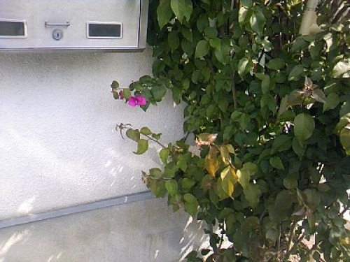おはようございます。今朝、会社に出勤すると早出の社員が車に材料や工具の積み込みをしている最中。掃除を始めようと思ったら社員がこんな一言を。「社長、トイレや室内はやっときました」思わず目頭が・・・なんてことはないですが、本当に嬉しいことです。私も「ありがとう」とお礼を言いました。最初は、私が掃除をしていても率先してやるなんてことはなかった。朝から気分が好いですね~!。写真は、会社の玄関脇のブーゲンビリア。冬が寒かったせいか、殆ど枯れ果てていましたが、枯れた枝を切り落としてみたら、新芽のように枝が伸び、ここまで葉が着きました。そして、漸く一ヶ所だけ紅くなり始めたようです。私も会社も、このブーゲンビリア同様に、まだまだ枯れて諦めるなんてことは出来ませんね(笑)。さっ、今日は朝から気分が好いので、いつもより余計に張り切って行きましょう!。それにしても、私は単純だ???。それではまた。