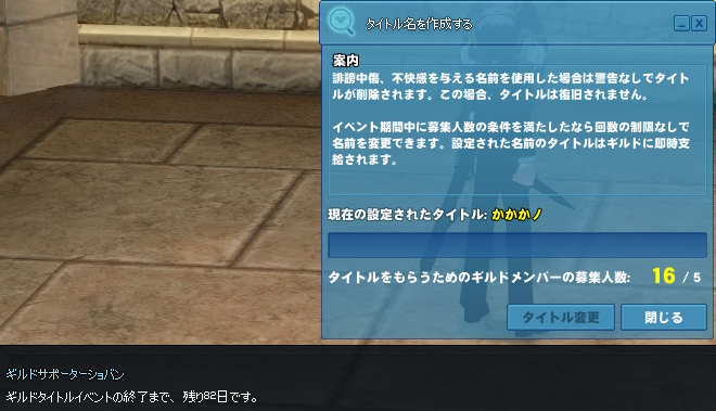 あと今なら イベント でギルドタイトルが自由に変えられるね。