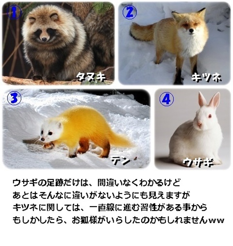 どうでしたか? 足跡と動物たちが合致しましたか?^^