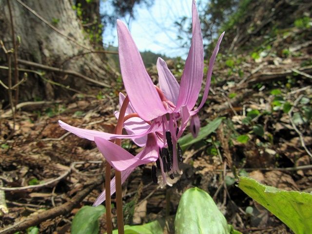 お昼休みもそこそこ、苗代に行く前にお社の所で見つけた「カタクリの花」