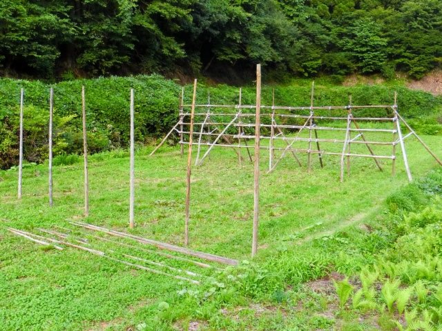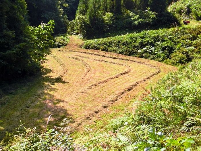 集草した牧草を上から見ると、なんかの印か文字?に見えるかもww