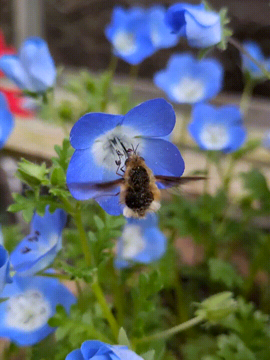 ​(玄関先の鉢植えのネモフィラとみつばち🐝)​