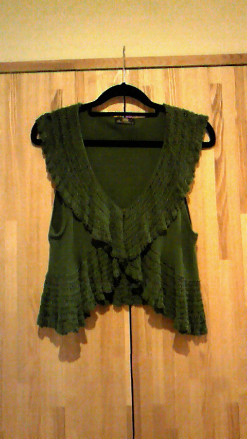 再度、交換希望しますm(__)mflowerChildrenのかぎ編みベストグリーン、1、2回着用美品です。スッゴく素敵で一目惚れして買いましたが、双子のやんちゃザウルスの前ではとても着る機会がありません(;_;)お声かけ頂いたのに、交換成立しませんでした(>_