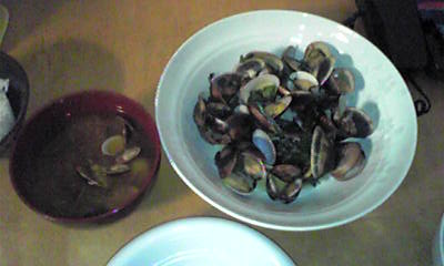 1日砂抜きしてから、酒蒸しと味噌汁にして食べました。苦労して採ったあさり(しおふき貝!?)は新鮮でおいしかったです!