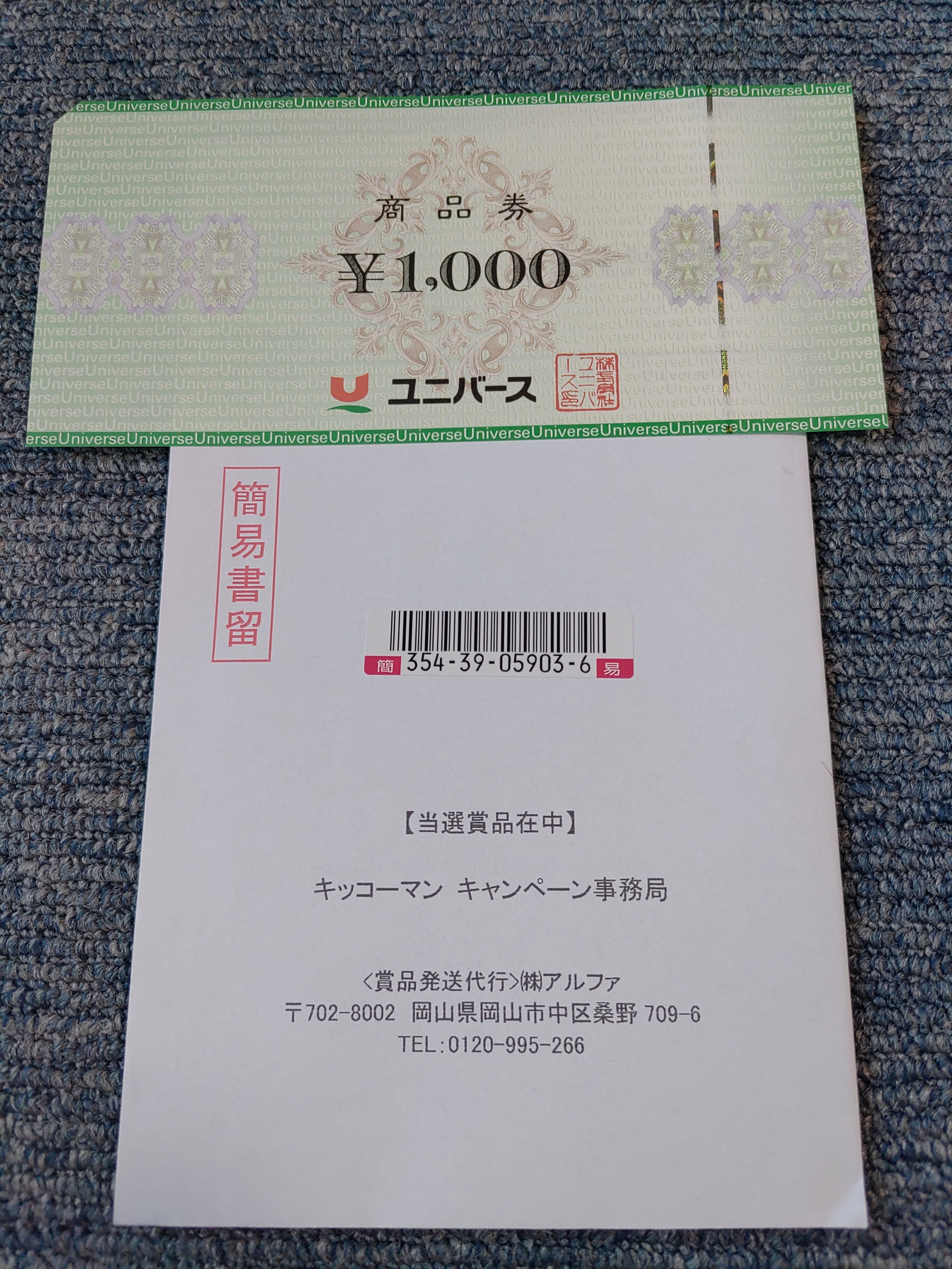 ユニバース商品券1000円分