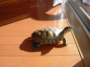 またかめちが甲羅をわたしの膝にゴリゴリ押し当ててダンスをしていました。