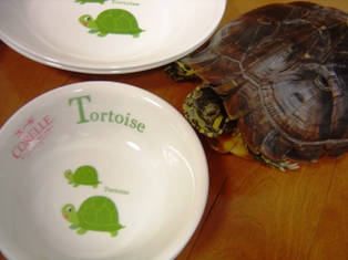 お買い物先で見つけた亀ちゃん柄のお皿。「かっわい~」と4種類2枚ずつ