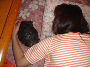 Reeちゃんも「亀、恐い」と言いながらだいぶ慣れてくれたのかも。