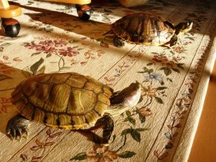 つついたりしているうちに亀を抱っこしたままうとうと寝ちゃいました