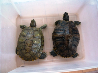 ふたりでくっついて伸びていました。触ると甲羅もポカポカ