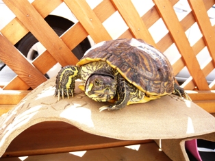 どんちゃんは昨日同様せっせと歩き回っていて陸場に上ってみたり飛び降りてみたり