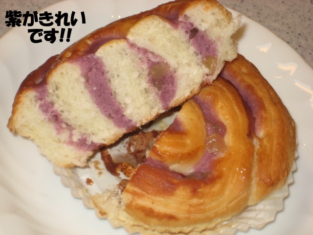 角ぎりの糖漬さつまいもと紫いも餡を巻きました。