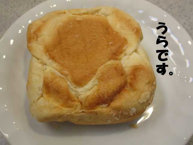昨日のジャムパン同様 裏を返すと包んだっぽい見た目。下のほうがパンじゃないなぁ…