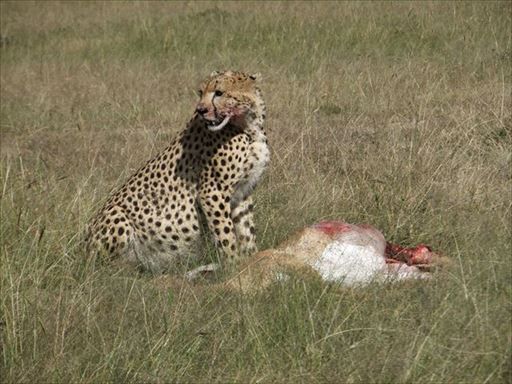 ケニアのサファリで、チータが獲物を捕らえた写真も入っています。