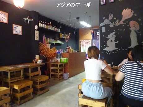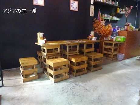 4名掛けのテーブルがあり、アジアの星一番が座っている2名用の