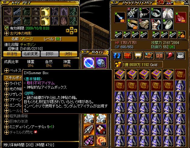 おはようございます。 特にネタはありませんがDXsummer Boxなるものが買い物籠に5つも入っていたので開けてみましたよっと。 ってちょww5万円分も買ったの自分wwwwwwwwwwwwwwww なんて後悔しつつ、5つも開ければ一つくらいいいものが出るはずなので開き直ってやってみました。 wwwwwwwwwwwwwwwwwwwwwwwwwwwwwwwwwwww 最近のドロップといい・・・何かの仕打ちですかそうですか・・・ ちなみに直後に2つ開けて2つとも地獄だったsc○tさん(ある意味伏字になってないwww)がいらっしゃいましたよっと! この差は何(ノд`●) オマケ昨日のスカイプでの1カット!ちなみに個人情報なので名前の部分は改ざんしてありますYO!本文はそのままです! [2009/09/17 23:14:43] 侑ちゃん: あなたの侑さんです こんな事言われると単純で、尚且つ愛に飢えてるかわいそうな男の子はドキドキしちゃいますYOヽ(●´p`●)ノさすが元・無料出会い系オンラインゲーム「RED STONE」の女性住人!男を手のひらで転がす技術は天下一品です>< それでは今日はこの辺で!壁|彡サッ
