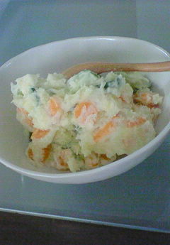 全部実家からの野菜で作ったポテトサラダで、お昼ごはんです