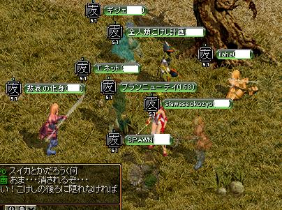 フレシプギルド戦【VS ΨMagicCastleΨ 様】場所:Cross Counter自軍参加人数:9人火力3 WIZ1 BIS3 妨害2でした(’’試合展開としては、始まってすぐに、こちら優勢で勝負が進んだという感じです。相手さんはほぼ壊滅状態。復活→みんなで倒す の繰り返しになっていた気がします。最後のほう 相手さんはコル役以外突撃→コールって感じでした。相手さんはどうやらギルマスさんが諸事情でいらっしゃらなかったらしく、少し統率力に欠けていたようでした。。。(’’火力も強い方が数名いらっしゃったので、次またやるときは、わかりませんね~(’’そして結果はでした(’’今回少し思ったことは、今回のような試合展開(こちらが一方的に有利)になったときに、私としては、もう少し具体的な指示が欲しいと思いました。。(’’復活した敵をみんなでワーって倒しにいくとどうしても隙ができて、今回、勝ちはしたのですが、なんとなく相手さんに踊らされていた様な気がしました。。(’’偉そうなことは言えないですが、例えば「火力と足止めだけで生き残り探してきて他は待機ね。」と言ったような指示とか。。。。なんかそんなようなの。。まぁそんな感じでした。w----------------------------------------------------------------【最近のブラン】現在178!!前回の日記で「ソロはクラゲのがおいしいかもしれないですね。。(’’」とか大嘘書いたのは誰ですか?まったく。全然蜘蛛のがおいしかったわい!----------------------------------------------------------------------【小ネタ画像】null。。。(’’。。。なる ほど。。(ぁまたね(’’ノシ