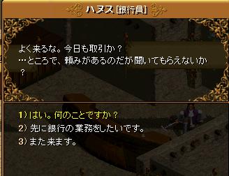 みなさんこんばんはー(’’いかがお過ごしでしょうか?最近のブランはというとあるクエを受けました。それは。。とまぁ銀行クエ(Lv5)なのです。前々から受けよう受けようとは思っていたのですが、いまいち物資とか鞄の開き具合が合わず、後回しにしていました。でもいいかげん受けることにしました(’’毎回「銀行クエどうよ?」みたいに言われるのも嫌ですしね。wとにもかくにもクエを受諾。。。おじさん。。そんなにまわるんですか。。鞄にも沢山クエアイテムがががが。。。でもまぁ街廻るだけなら結構すぐおわるんでいいかな。。。 とにかくまずは古都に行くことにしました。 =ヽ(・ω・)ノ 【古都】どうぞクレナさん!!次にハノブへ。。 =ヽ(・ω・)ノ 【ハノブ】どうぞベゴさん!(略)そしてアウグへ =ヽ(・ω・)ノ 【アウグ】どうぞメさ!(更に略)そしてそしてブリッジへ。。。 =ヽ(・ω・)ノ 【ブリッジ】どぞジェ!!(更に更に略)とまぁテレポーター使うと意外と早くできました。。あとはこれをアリアンに届けるだけです(’’ゝ「はいおじさん!!(名前忘れた。)」 。。。。。(’I’)。。。。。そりゃあこれだけで終わるはずないですよね・・もう十分でしょうに。。。なんて思ってたら。。選択肢に「もう十分」が!!でもこれおしたら最初からなんだろうな。。なんて思ってたら いつの間にか押していました。(ぁあれ。。。やらなくてもいいのね。。。。。でもちょっとおじさんしょんぼりしてます。。wそしてちょっとふてくされてます。wとまぁアリアン銀行のおじさんに嫌われはしましたが、無事称号獲得しました!!!(’’*いやぁ良かった良かった。今回何が疲れたってこの日記が一番疲れました。(ぁ------------------------------------------------------------------【リンク更新報告】ブックマークにギルメンのこけしさんのブログ『へたれの歩み(笑』みんなでどしどし訪問しちゃってください!!-------------------------------------------------------------------【最近のブラン】現在着々とLv上がり中。 Lv170Lv171Lv172で現在Lv172であります(’’ゞ--------------------------------------------------------そろそろ暖かくなってきましたね。春ももう間近です。それではまたー(’’ノシ