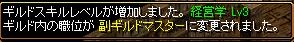 みなさんこんにちはー(’’よかったら一つ前のGV記録もどうぞ~あとフリーページ欄に「フレシプギルド戦記」を追加しました。フレシプのギルド戦の足跡がまるわかり!!良かったらみてね(’’--------------------------------------------------------------最近はブログのネタが逆に 書ききれないほど あるのでそれを一気に消費します(ぁとりあえず最近ブランはある称号クエをうけました(’’ゞある称号クエとは 「鑑別師クエ」です。(’’最近のアップデートでどうやらLv10まで実装されたようなので、とりあえず行けそうなところまでは行こうかなということで取ってみました。やる前はまだLv1だったので。。。。(ぁとりあえずLv2を取得(’’ゞ非常に簡単でした。(そりゃそうか。。)ついでにむか~し闘ってものすごく苦労した覚えのある敵会ってきました。みなさんも一度は挑んで死亡したことがあるのでは無いでしょうか?w今闘ったら瞬殺でしたが。。。(ぁつづいてLv3~これも全然簡単でした。少しドロップ率が良くなかったのでちょっと時間が掛かりましたが。。。適正だと大変そうですね。。(’’つづいてLv4~これはロマ村だったのでギルメンのマスコさんに連れてってもらいました。(’’マスコさんありがとうございました。!!大分時間がたちましたがLv5~(ぁそれにしても授業料ってなにさ。。授業料って。。。と今回はLv5まで一応取ってみました。見える! 見えるぞ! お前のスタンドの動きが!このあとのLv6ですが、結構いけそうだったので受けてもよかったのですが、時間がなく、キリも少し良かったので今はこれで止めてます。というよりLv315まで見えれば当分は困らないかなと。。この続きはまた時間があればとりたいですね。。(’’------------------------------------------------------------今回ついでにこれも取ってみました。(’’サバイバルです(’’ゞなんで取ったかというと、今までGv終わったあと生き残ってても自分だけ赤く無かったんですね。それでなんか赤くなりたいなぁ~と思って取ってみました。(ぁが、 しか~し!今回のアップデートで変更されたのか分からないですが、ギルド戦フィールドから帰ってきたらHPが 全快 するようになってました。。。(’’;(前はHP1とかだったのに。。。)なんか意味無かったですが。。。。まぁいいや。。。(’’。。。--------------------------------------------------------------------【RS隠れ名所のご案内。】アリアン左ナナメ下「隔離スペース(ぁ」ご入場はアリアン右ナナメ下からどうぞ^^ステンドグラスがとってもきれいな「アウグスタ大聖堂」中央噴水から右ナナメ上徒歩5秒です。ご家族そろってどうぞ^^----------------------------------------------------------------結構書いたつもりなのですが。。。。。まだちょっと書くこと残ってるのでそれは次の機会に~それではまた~(’’ノシ